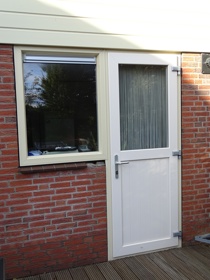 Dit model is afgewerkt met een nette verstek verbinding en past perfect bij een tijdloze woonstijl. Er zijn geen raamroeden toegepast, maar deze zijn wel mogelijk als u dat wenst. Deze achterdeur is praktisch in gebruik en laat aangenaam veel daglicht binnen.