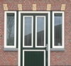 Kunststof voordeur met verdiepte kaders en zijlichten.