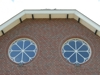 Monumentaal pand met glas in lood in de kunststof kozijnen.